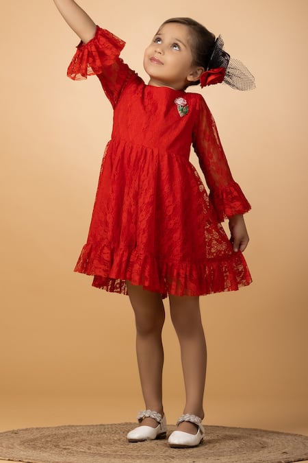 Red Taffeta, Chanderi, Linen Embroidery Queen Of Roses Dress