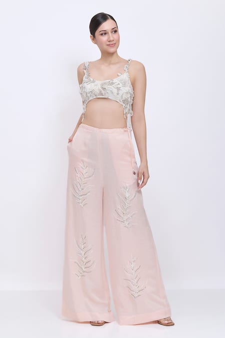 Ivory Net, Polyester, Satin Fabric Flowers, Beads, Cut Work Scoop Daalis Blouse
