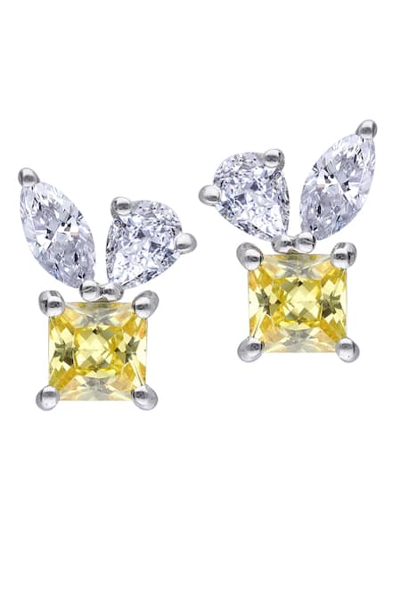 Yellow Crystals Geometric Pattern Swarovski Zirconia Embellished Studs