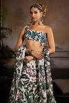 Green Organza, Crepe, Linen Embroidery One Shoulder Bloom Print Lehenga Set