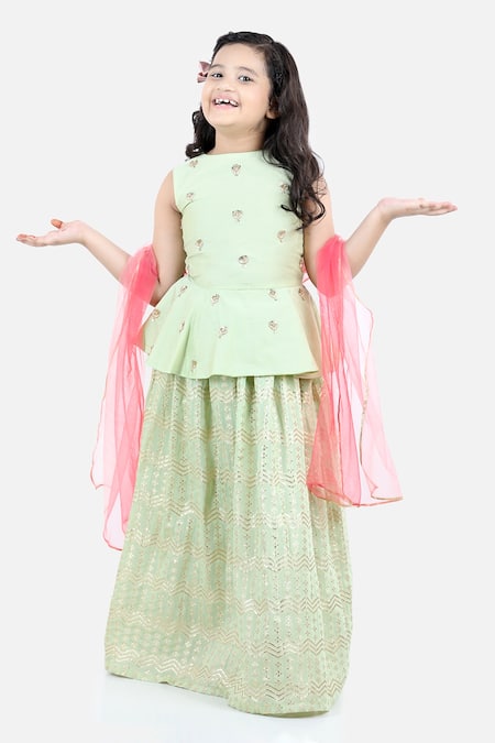 Green Chanderi Silk Sequins Peplum Kurta Lehenga Set