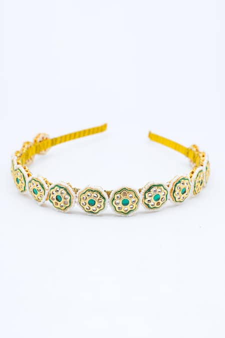 Gold Crystals, Beads Studded Floral Brooch Hairband