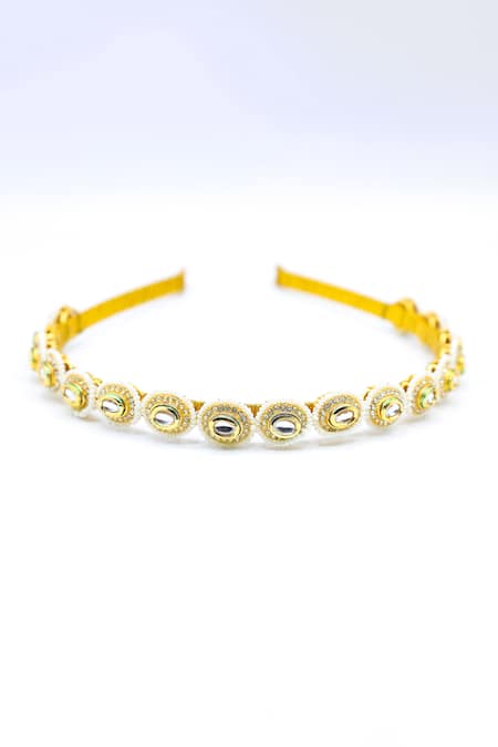Gold Crystals, Beads Graceful Halo And Studded Hair Band