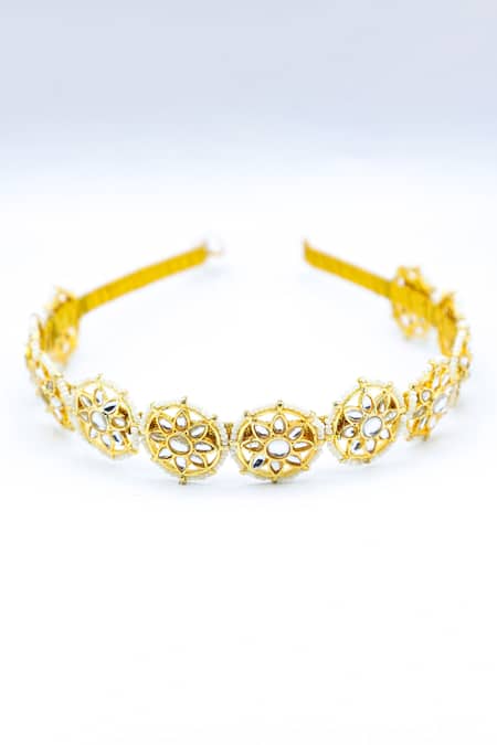 Gold Crystals, Beads Tulip Ferna And Studded Hair Band