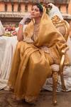 Gold Tissue, Brocade Zari, Embroidery Round Neck Saree Set