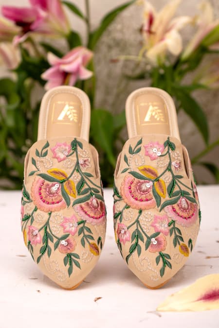 Multi Color Ivy Floral Embroidered Mules