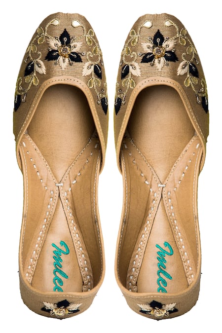 Buy_Imlee Jaipur_Gold Embroidered Silk Juttis _at_Aza_Fashions