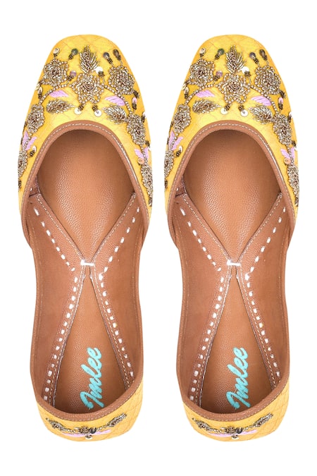 Yellow Embroidered Silk Juttis