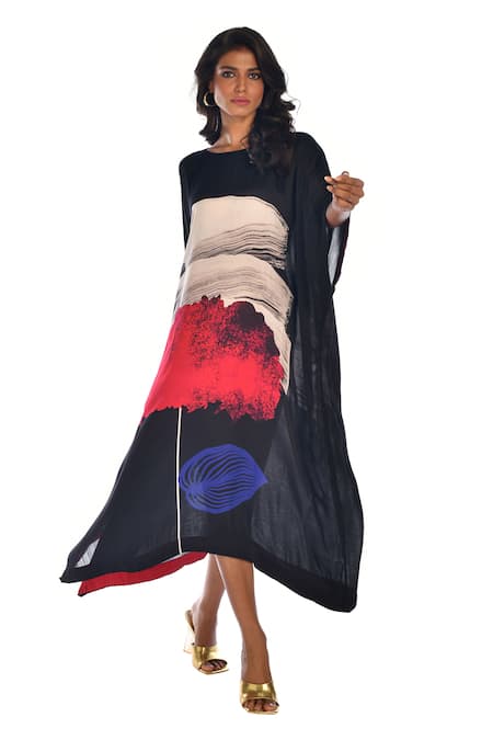Black Georgette Foil Printing Round Digital Printed Kaftan With Satin Border