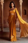 ISHA GUPTA TAYAL Yellow Crepe Embroidery Asymmetric Printed Skirt Set