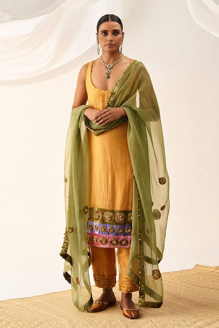 Yellow Tissue, Organza Gota Patti, Zari Scoop Colorblock Embellished Kurta Set