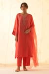 Coral Chanderi, Organza Embroidery Keyhole Neck Kurta Set