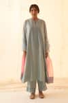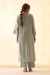 Aqua Chanderi, Organza Embroidery Mandarin Collar Ice Blue Kurta Set