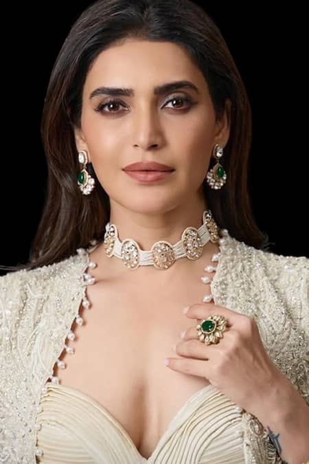 Gold Plated Pearls, Diamonds Polki Embellished Multi Strand Necklace Set