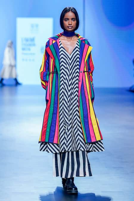 Black Cotton Striped Midi Skirt