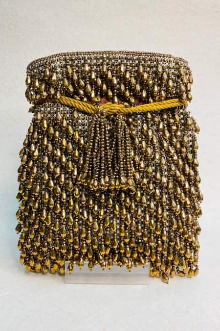 Brown Beads, Embroidery Ritz Drop Potli Bag With Sling