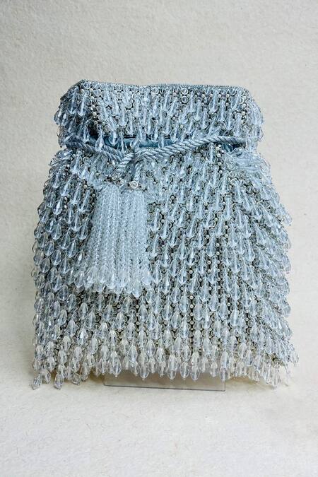 Silver Embellishment Ritz Bead Drop Potli Bag With Sling