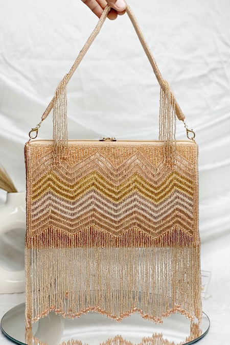 Rose Gold Bead Nalki And Fringe Bag