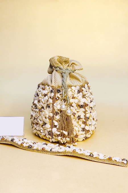 Gold Embellishment Vestito Jute Potli Bag With Strap