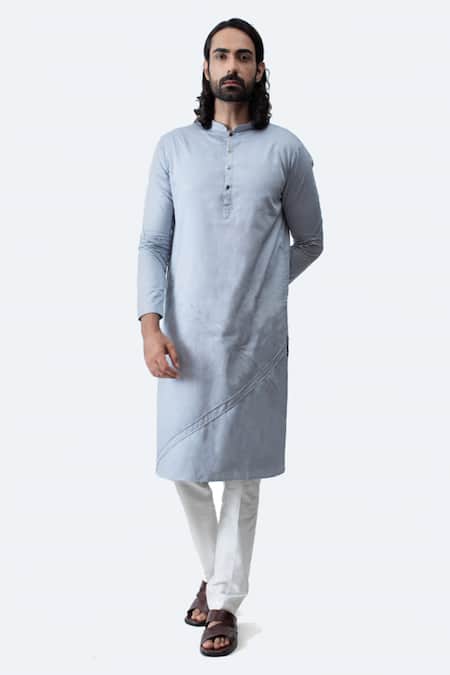 Blue Satin And Silk Cord Detail Kurta & Pant Set