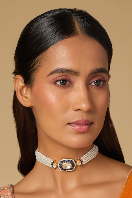 Blue Beads, Pearls, Stones Siva Moissanite Choker