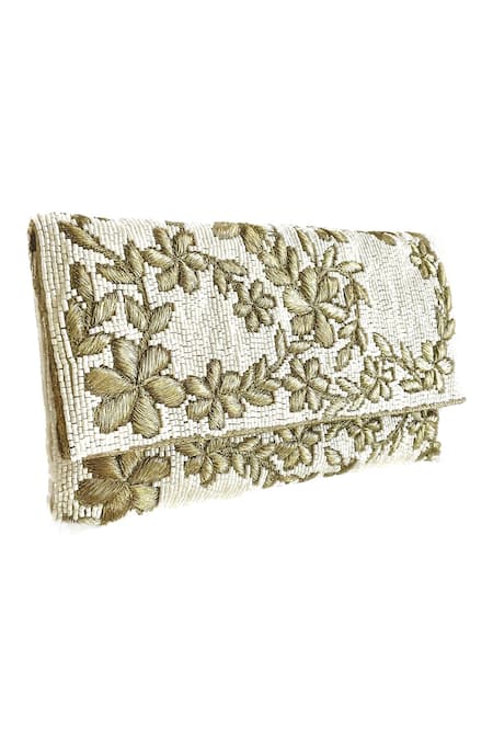 White Hand Embroidered Printemps Flower Clutch