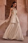 Ivory Silk, Organza Pearls Sweetheart Neck Embroidered Sharara Set
