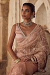 Pink Organza, Gota Patti, Pearls V-neck Sheer Saree Set