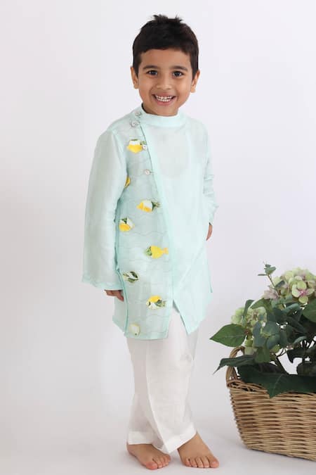 Green Silk Embroidery Fish Motif Kurta And Pyjama Set