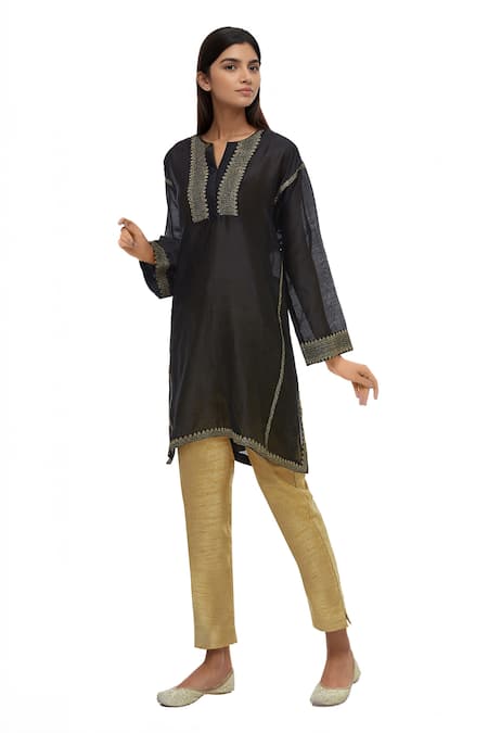 Black Chanderi Split Embroidered Kurta