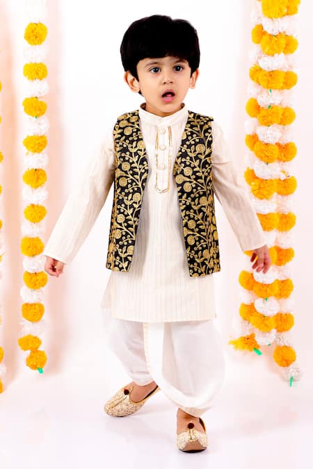 Black Cotton Embroidery Floral Bundi And Kurta Set