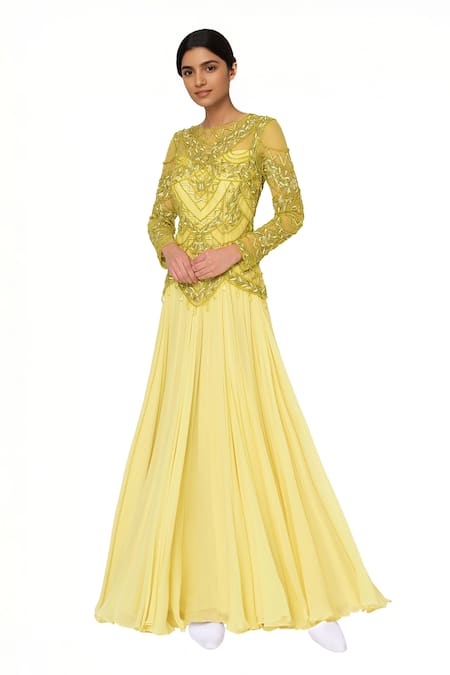 Yellow Embellished Flared Gown