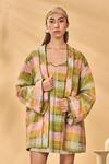 Multi Color Cotton, Linen Embroidery Pina Colada Holiday Home Dress And Jacket Set