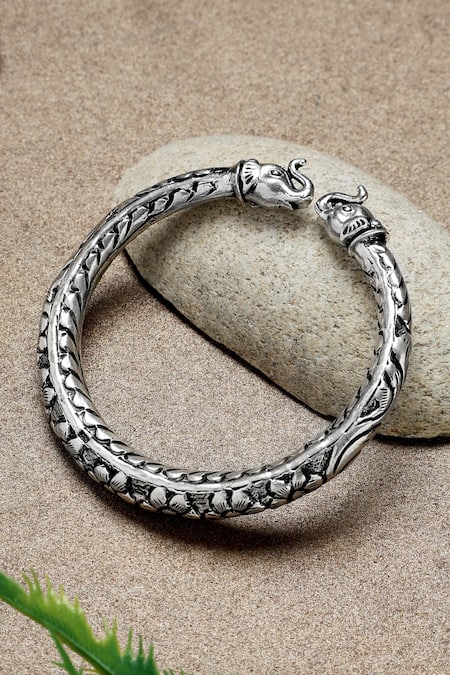 Silver Plated Elephant Carved Kada