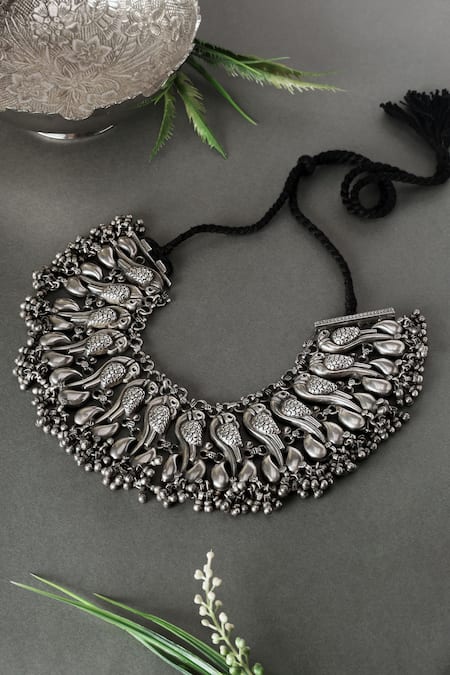 Silver Plated Peacock Ghunghroo Tassel Necklace