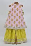 Pink Cotton Zari Floral Print Baby Kurta Set