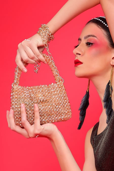 Rose Gold Pearls, Crystals Mini Shoulder Bag With