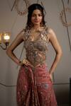 Taupe Net, Modal, Satin Sequins, Embroidery Round Neck Cyra Co-ord Set