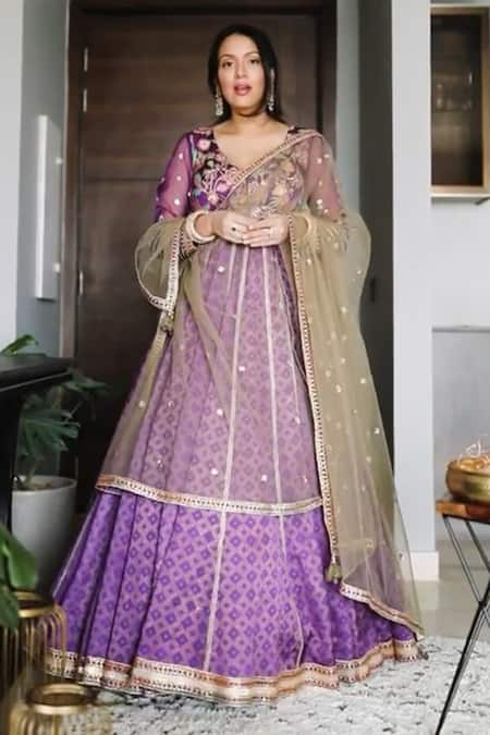 Purple Modal Satin, Organza Dupatta Butterfly Sargun Embroidered Anarkali With