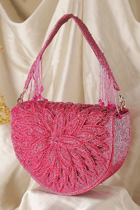 Fuchsia Beads, Tassels Floral Embroidered Flap Bag
