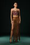 Brown Tulle Beads, Embroidery Sweetheart Neck Beaded Corset Top