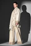 Off White Silk Embroidery, Beads V-neck Handthread Kurta Set
