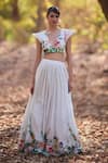 Buy_Nirmooha_Ivory Silk Embroidery V-neck Floral Printed Lehenga Set _at_Aza_Fashions