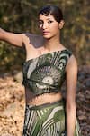 Olive Green Silk Tassels Asymmetric Tribal Royal Geometric Printed Lehenga Set