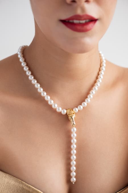 White 22k Gold Plated Horse Pendant Lariat Necklace
