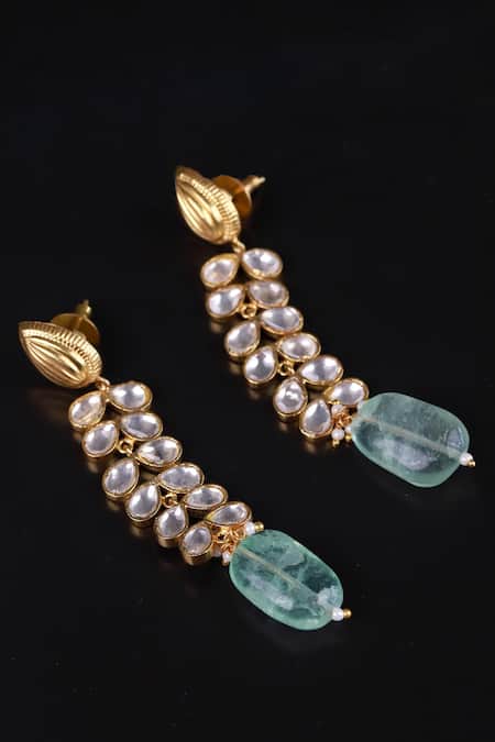 Gold Plated Diamonds, Stones Polki Embellished Dangler Earrings