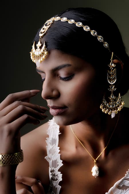 Buy_Osvag India_Gold Plated Polki Embellished Maangtikka _at_Aza_Fashions