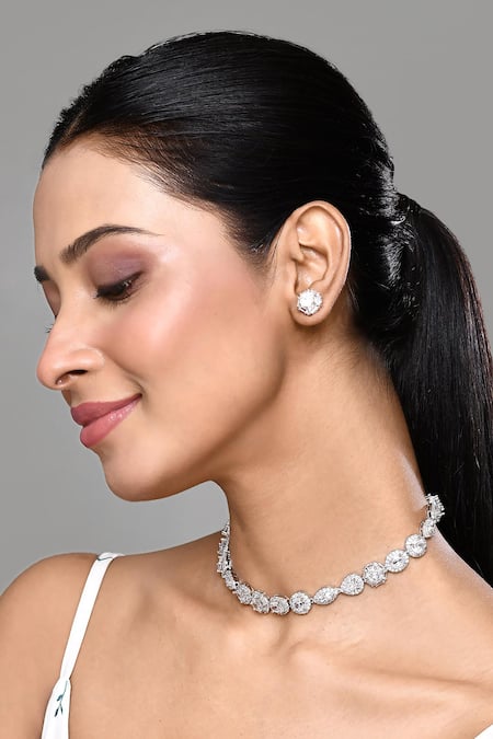 Silver Plated Crystals Clear Stone Studded Necklace Set