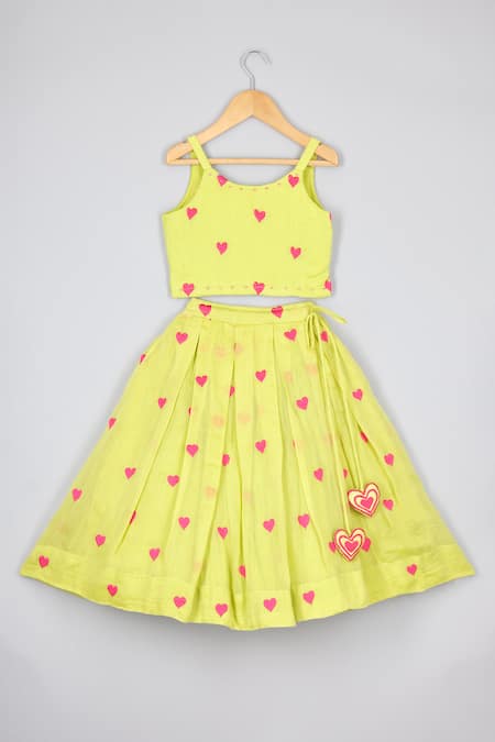 Green Chanderi, Taffeta Beads Scoop Neck Heart Lehenga Set