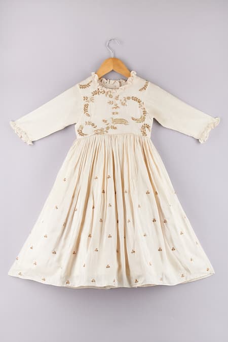 Buy_P & S CO_White Silk Sequins, Zari Embroidered Dress _at_Aza_Fashions